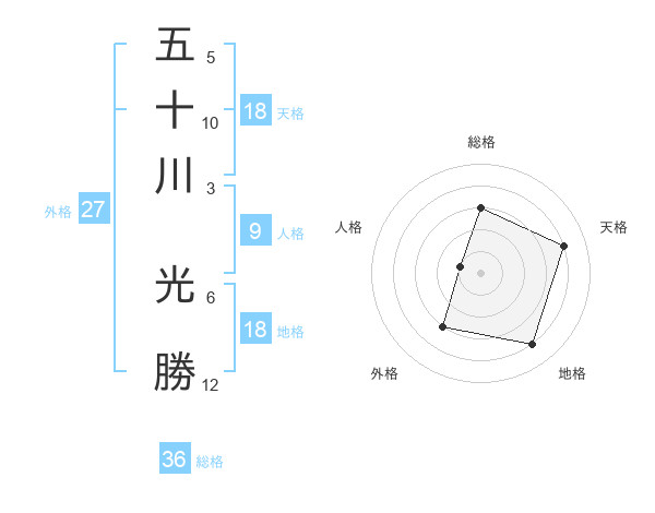 五十川 光勝さんを姓名の画数から五運を鑑定