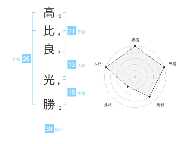 高比良 光勝さんを姓名の画数から五運を鑑定