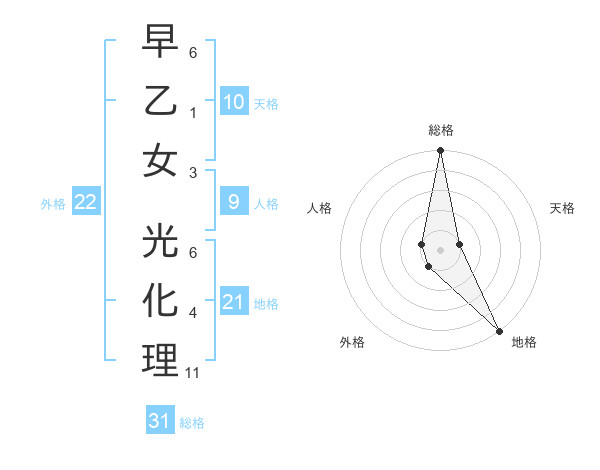 早乙女 光化理さんの総格は31画の5点!