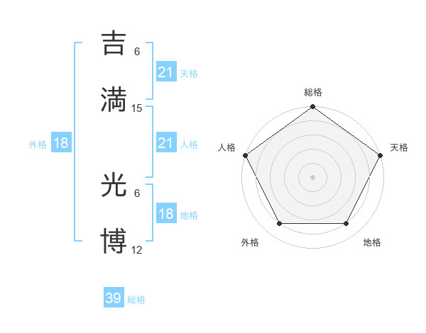 吉満 光博さんの天格は21画の5点!
