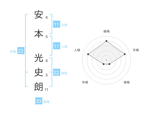 安本 光史朗さんの総格は33画の4点!