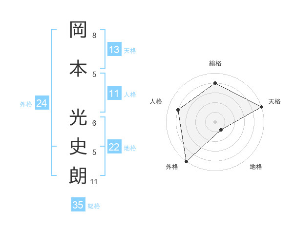 岡本 光史朗さんの天格は13画の5点!