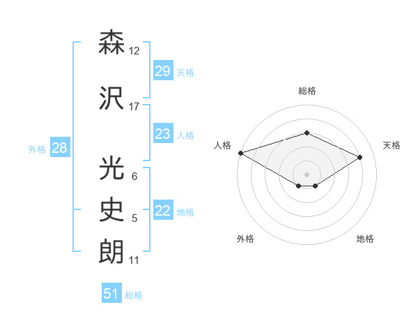 森沢 光史朗さんの総格は51画の3点!
