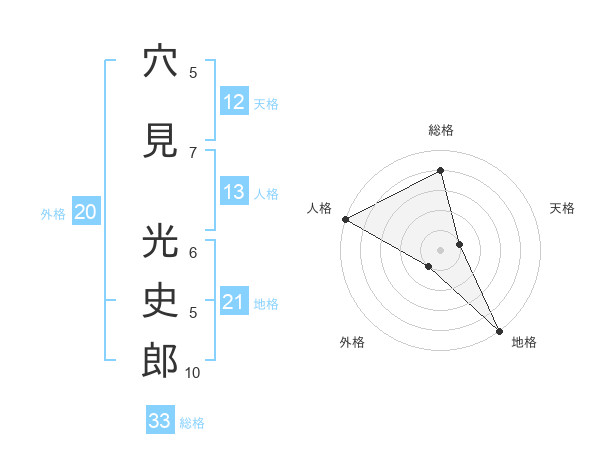 穴見 光史郎さんを姓名の画数から五運を鑑定