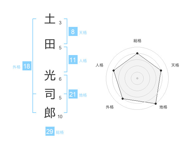 土田 光司郎さんを姓名の画数から五運を鑑定