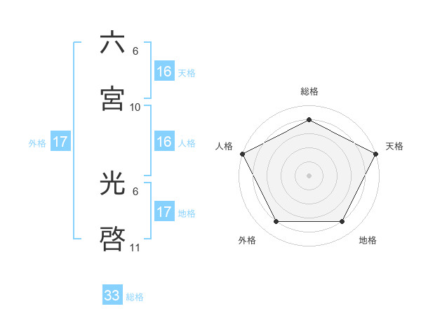 六宮 光啓さんの総格は33画の4点!