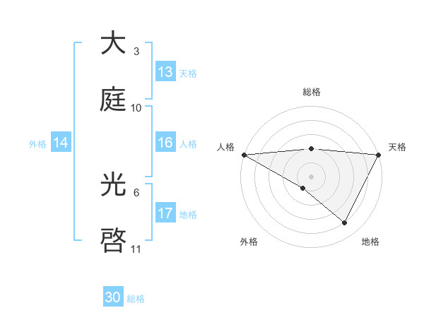大庭 光啓さんを姓名の画数から五運を鑑定