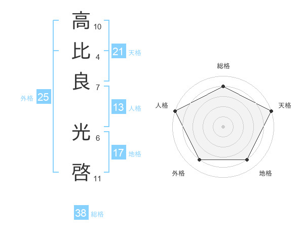 高比良 光啓さんの天格は21画の5点!