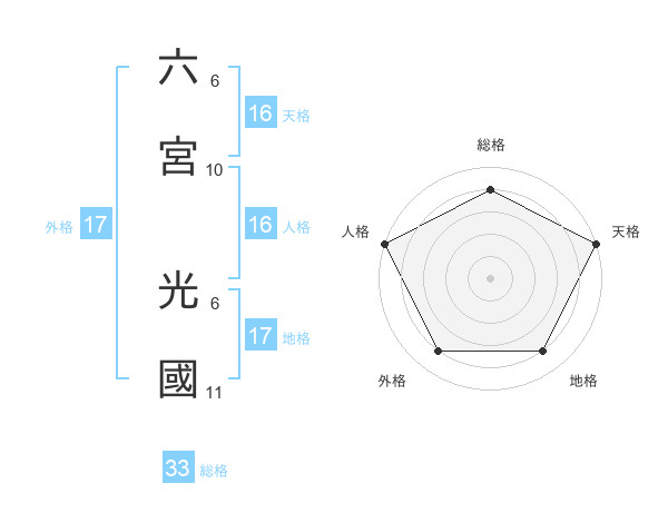六宮 光國さんの天格は16画の5点!