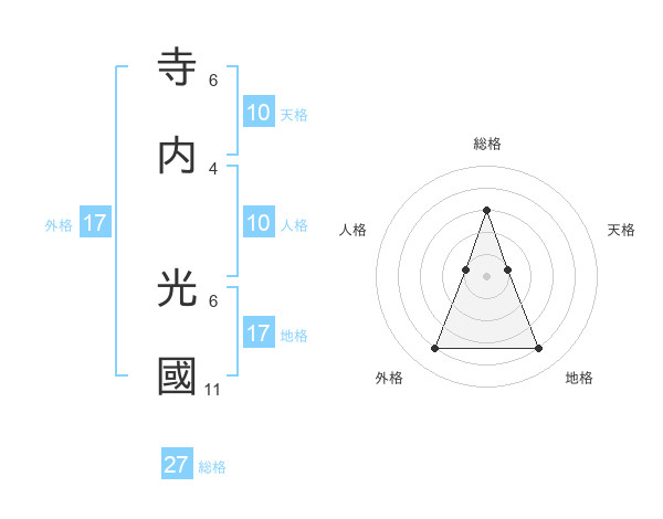寺内 光國さんの総格は27画の3点!