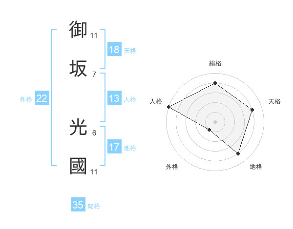 御坂 光國さんの総格は35画の4点!