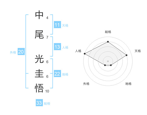中尾 光圭悟さんの総格は33画の4点!