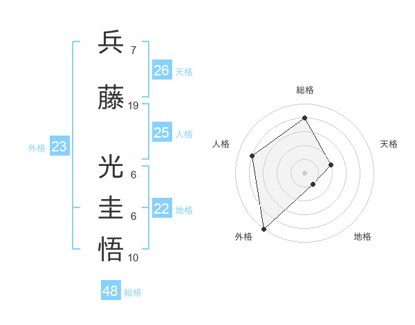 兵藤 光圭悟さんを姓名の画数から五運を鑑定