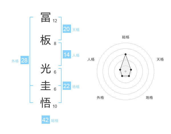 冨板 光圭悟さんを姓名の画数から五運を鑑定