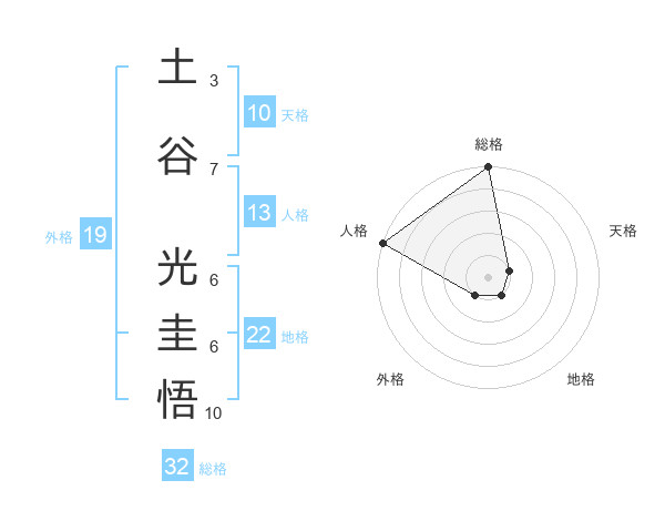 土谷 光圭悟さんを姓名の画数から五運を鑑定