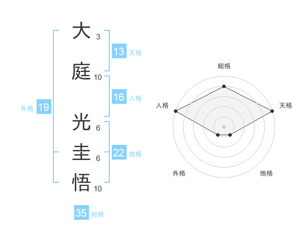 大庭 光圭悟さんを姓名の画数から五運を鑑定