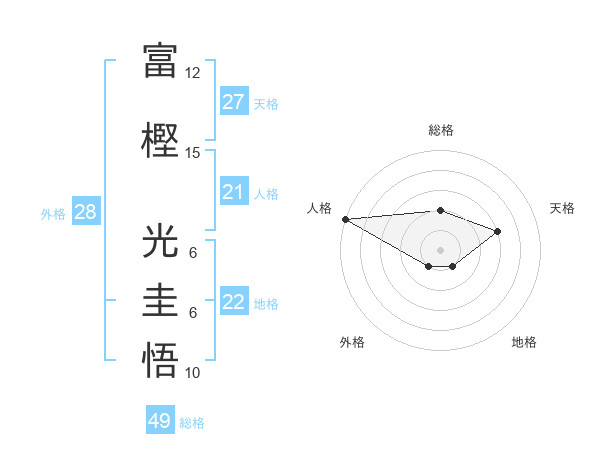 富樫 光圭悟さんの総格は49画の2点!
