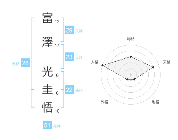 富澤 光圭悟さんを姓名の画数から五運を鑑定