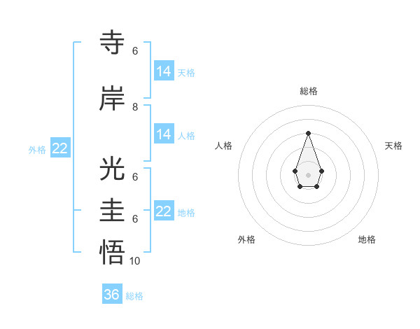 寺岸 光圭悟さんの外格は22画の1点!