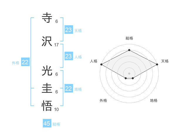 寺沢 光圭悟さんの人格は23画の5点!
