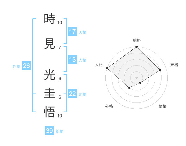時見 光圭悟さんを姓名の画数から五運を鑑定
