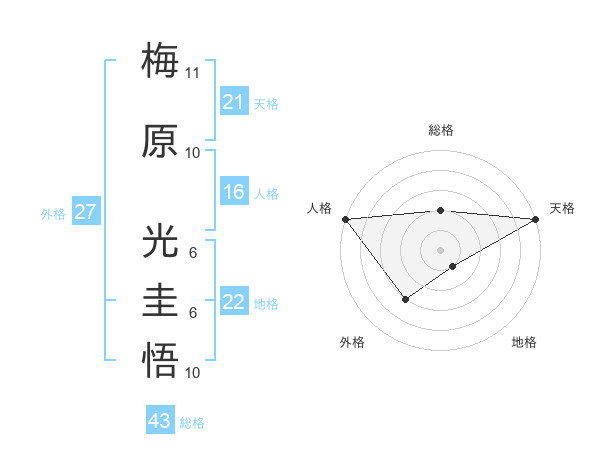 梅原 光圭悟さんを姓名の画数から五運を鑑定