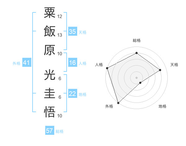 粟飯原 光圭悟さんの総格は57画の4点!