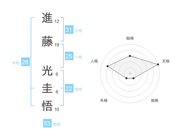 進藤 光圭悟さんの天格は31画の5点!