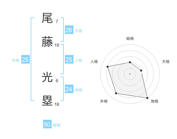 尾藤 光塁さんの外格は25画の4点!