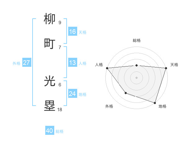 柳町 光塁さんの外格は27画の3点!