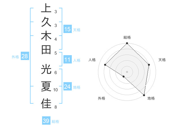 上久木田 光夏佳さんを姓名の画数から五運を鑑定