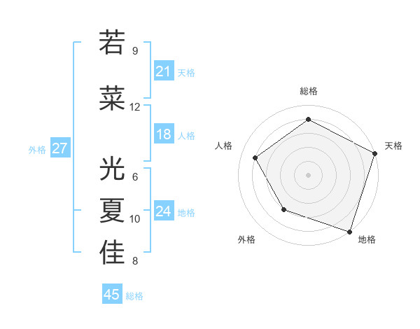 若菜 光夏佳さんの総格は45画の4点!