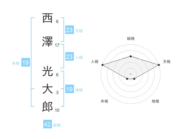 西澤 光大郎さんを姓名の画数から五運を鑑定