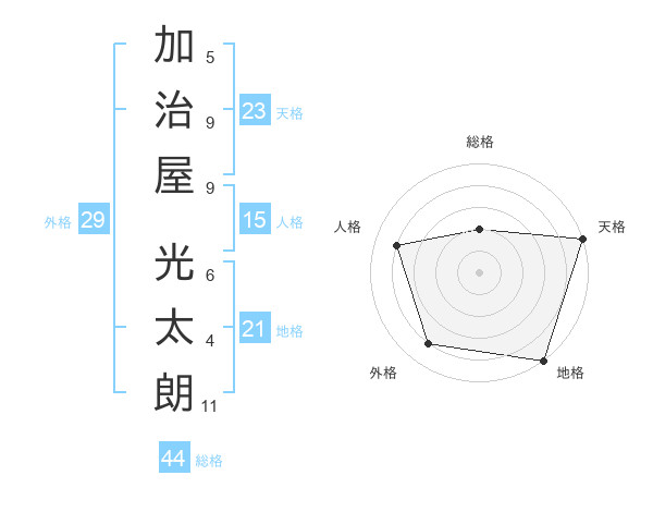 加治屋 光太朗さんを姓名の画数から五運を鑑定