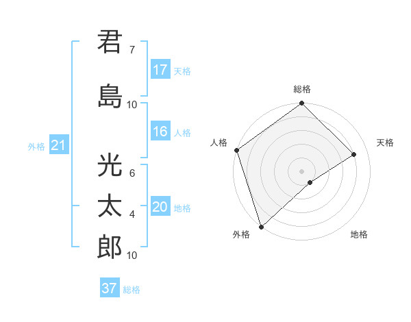 君島 光太郎さんを姓名の画数から五運を鑑定