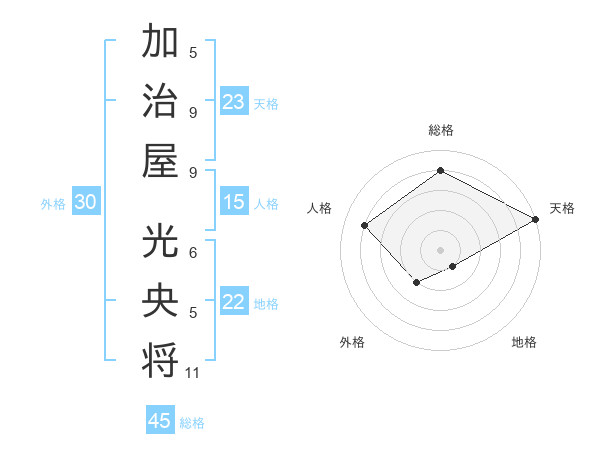 加治屋 光央将さんを姓名の画数から五運を鑑定