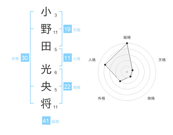 小野田 光央将さんを姓名の画数から五運を鑑定