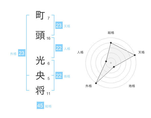 町頭 光央将さんを姓名の画数から五運を鑑定