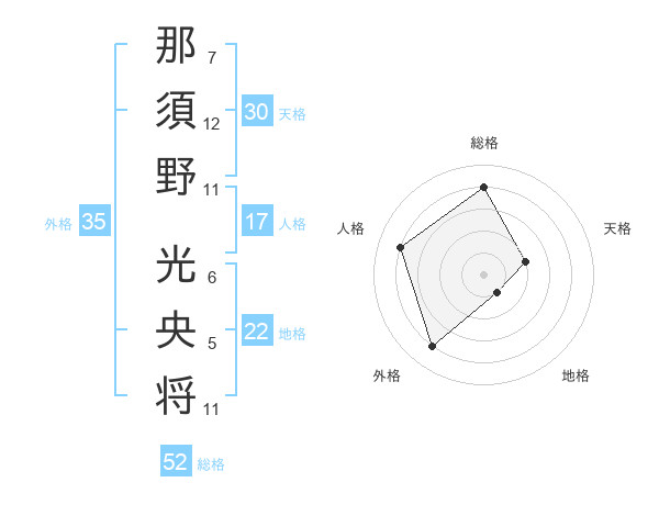 那須野 光央将さんを姓名の画数から五運を鑑定