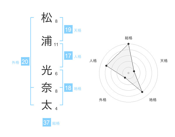 松浦 光奈太さんの総格は37画の5点