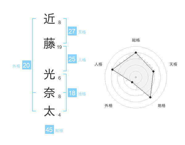 近藤 光奈太さんを姓名の画数から五運を鑑定
