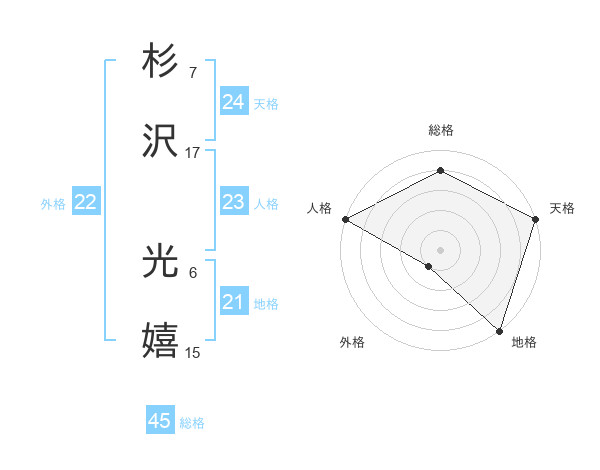 杉沢 光嬉さんを姓名の画数から五運を鑑定