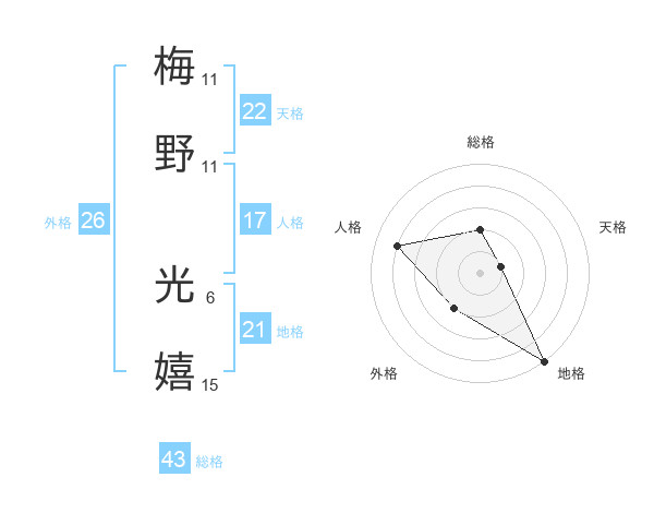 梅野 光嬉さんの総格は43画の2点!