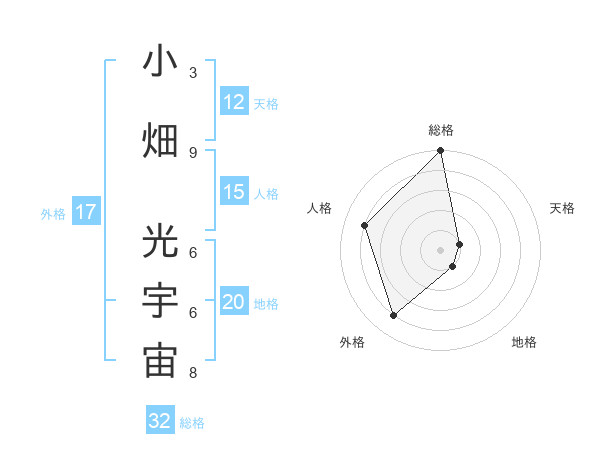 小畑 光宇宙さんを姓名の画数から五運を鑑定