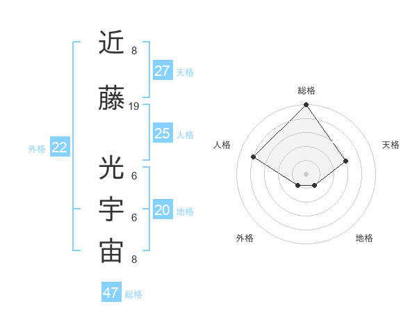 近藤 光宇宙さんを姓名の画数から五運を鑑定