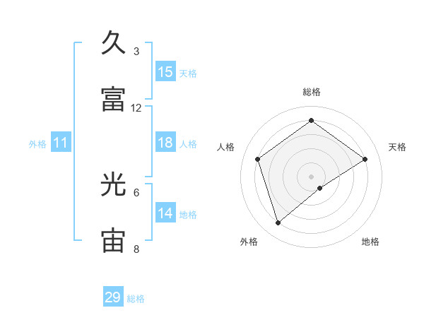 久富 光宙さんの総格は29画の4点!
