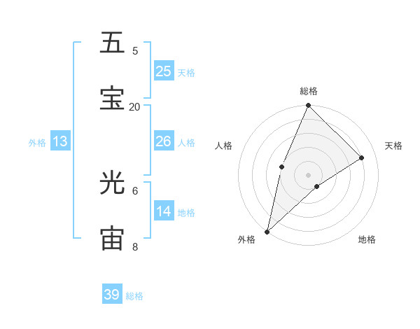 五宝 光宙さんの天格は25画の4点!