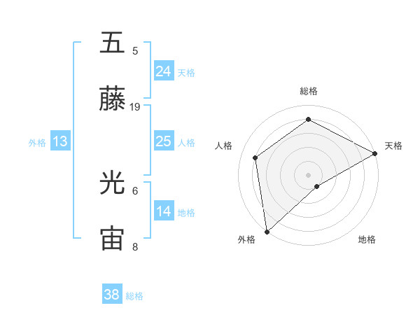 五藤 光宙さんの総格は38画の4点!