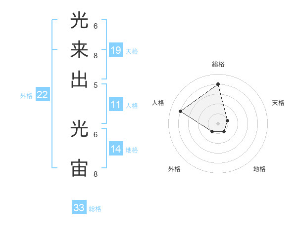 光来出 光宙さんの外格は22画の1点!