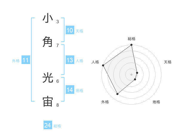小角 光宙さんの外格は11画の4点!